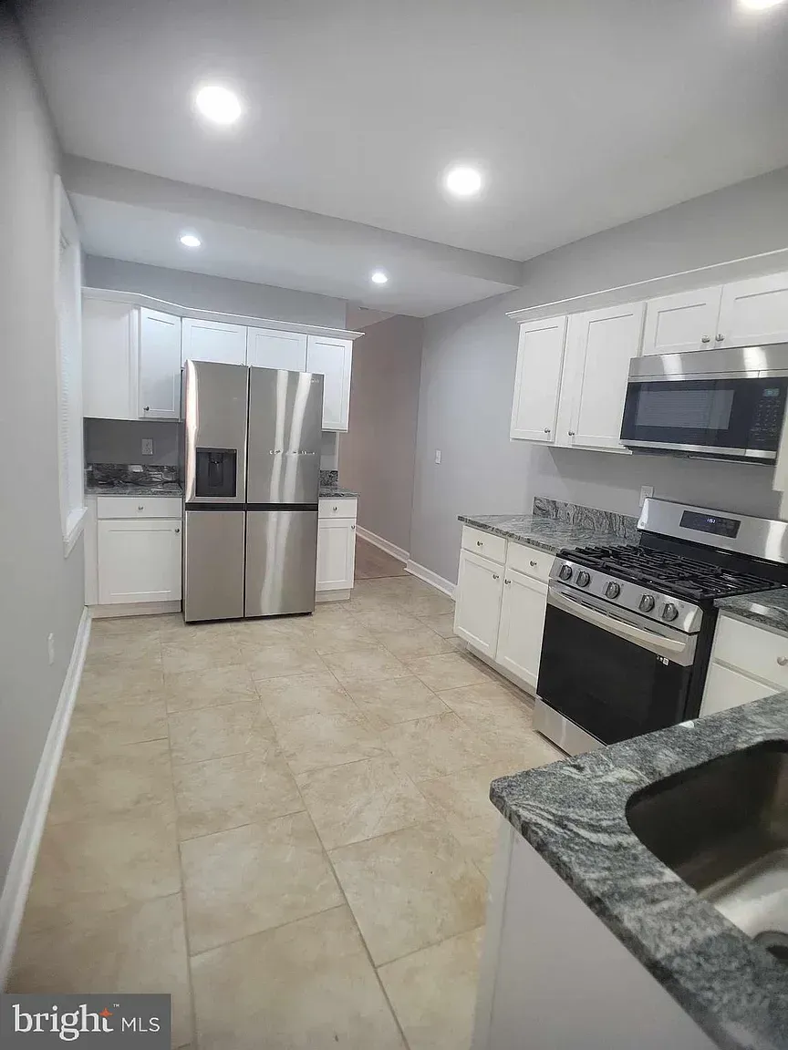 Freshly updated in 2024, this end‑unit brick townhouse features a long, open living/dining room with new LVP floors, a crisp white kitchen with granite counters, recessed lighting, and stainless gas appliances. Two full tiled baths include a walk‑in shower. The bay‑window primary bedroom is bright and roomy; all bedrooms have ceiling fans. Newer paint and new carpet throughout, replacement windows, natural‑gas heat, and central air keep things comfortable. Off‑street parking plus a small side yard. Steps to William “Judy” Johnson Memorial Park and Little Italy dining, with quick access to the Riverfront and I‑95. Move‑in ready with room to add your own touch!